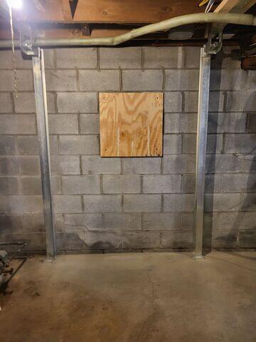 The following week, our production team, containing a seasoned foreman and skilled installers, arrived at the site, ready to implement the plan. Utilizing zinc-plated steel beams, the PowerBrace system was meticulously custom-fit to the basement's specifications. Throughout the installation, each beam was carefully positioned against the affected walls, secured tightly with brackets anchored both to the basement floor and the first-floor framing above.
