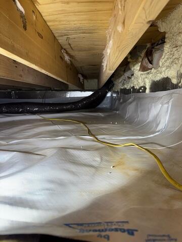 Our production team worked efficiently to bring this solution to life. The installation started with CleanSpace, which served as a robust vapor barrier, effectively resisting moisture infiltration. Working in tandem with CleanSpace, the TerraBlock insulated the crawl space floor, while also adding flexibility to navigate its uneven surface. SilverGlo insulation worked to seal the walls, enhancing the effectiveness of the vapor barrier and boosting energy efficiency with an R-11 insulation rating.
